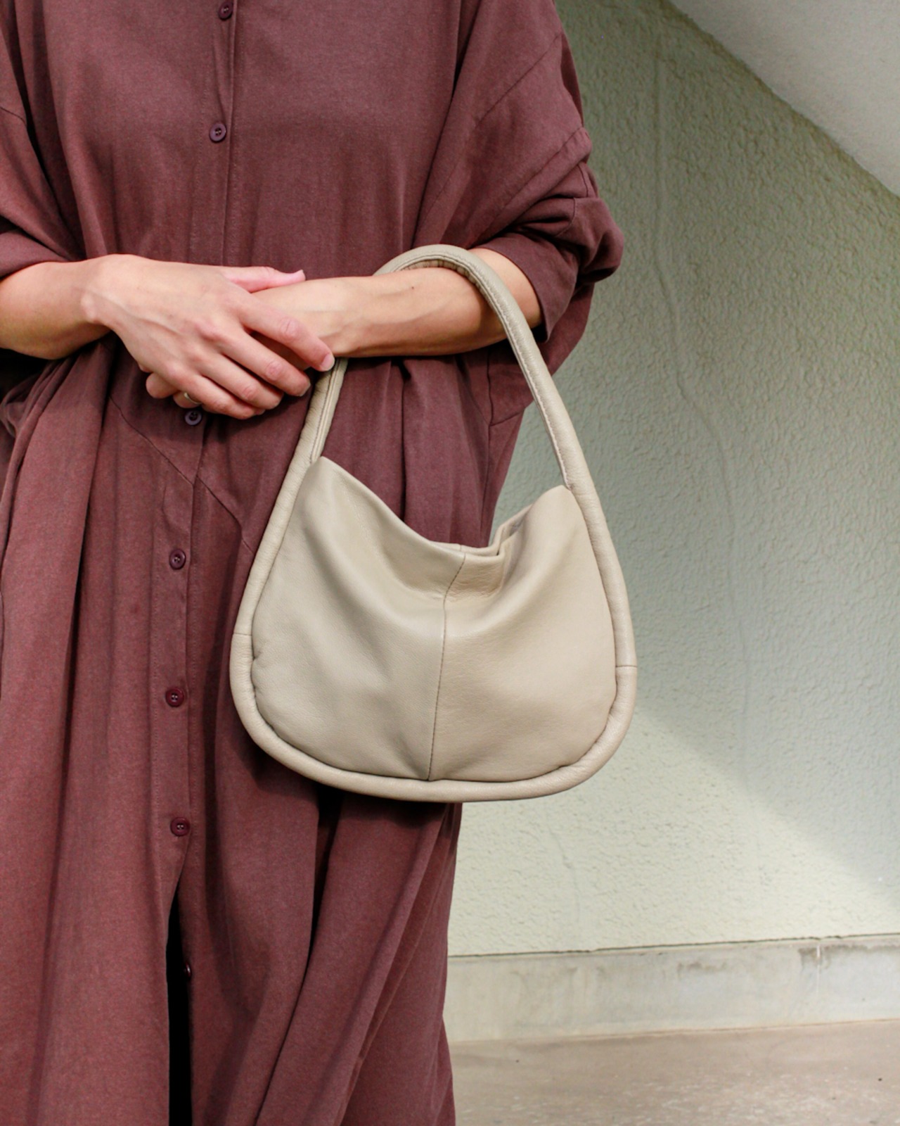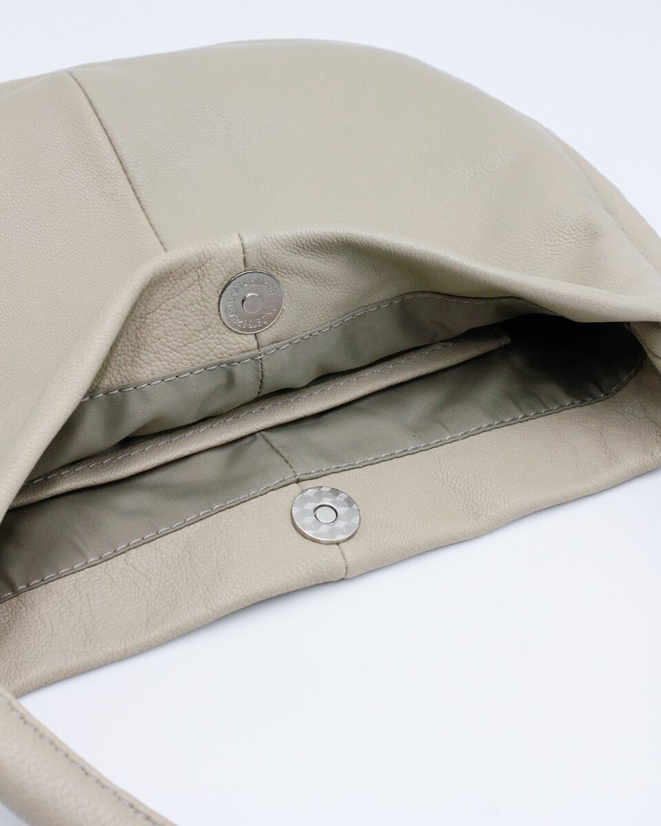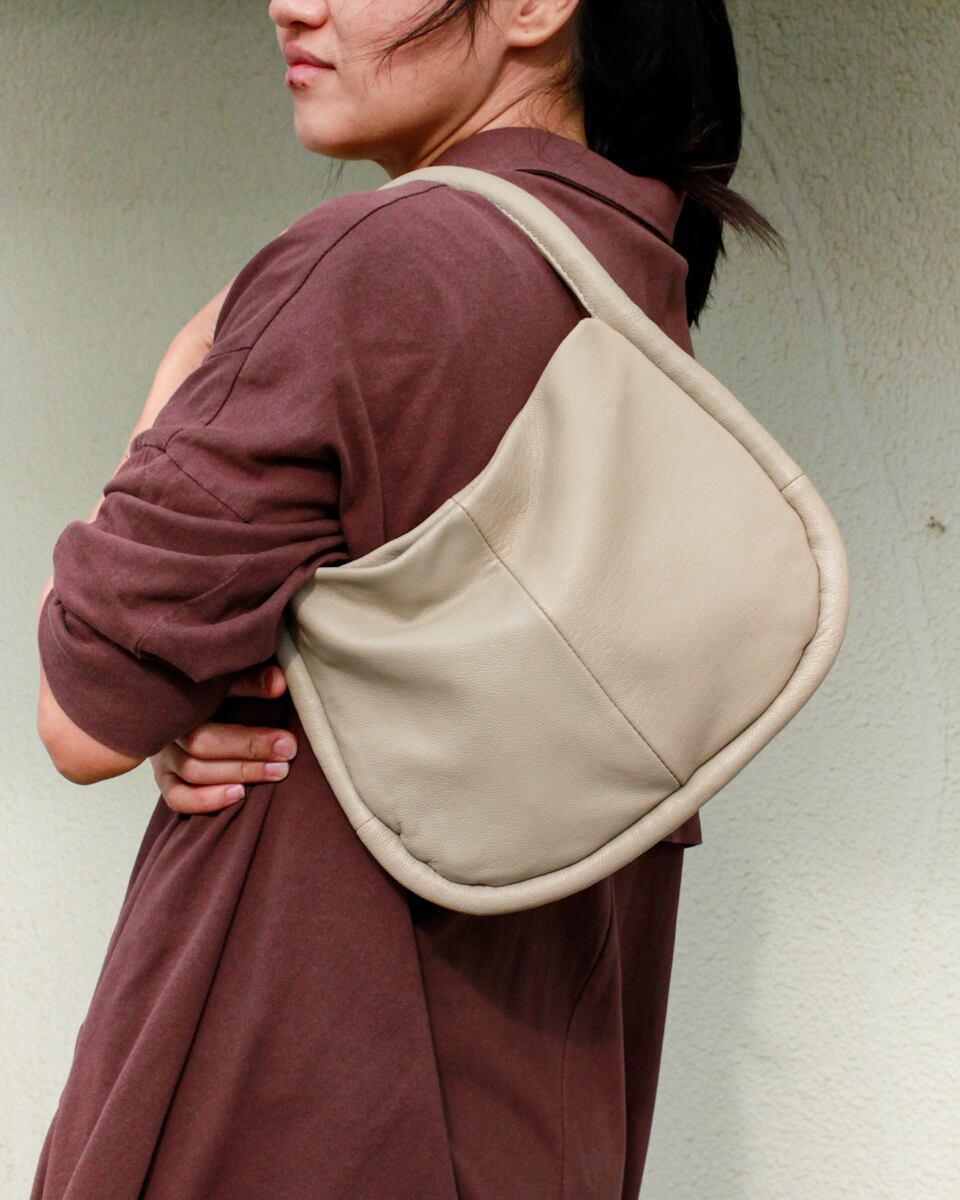 やわらかな本革を贅沢に使用した、丸みのあるハーフムーン型ワンショルダーバッグ。