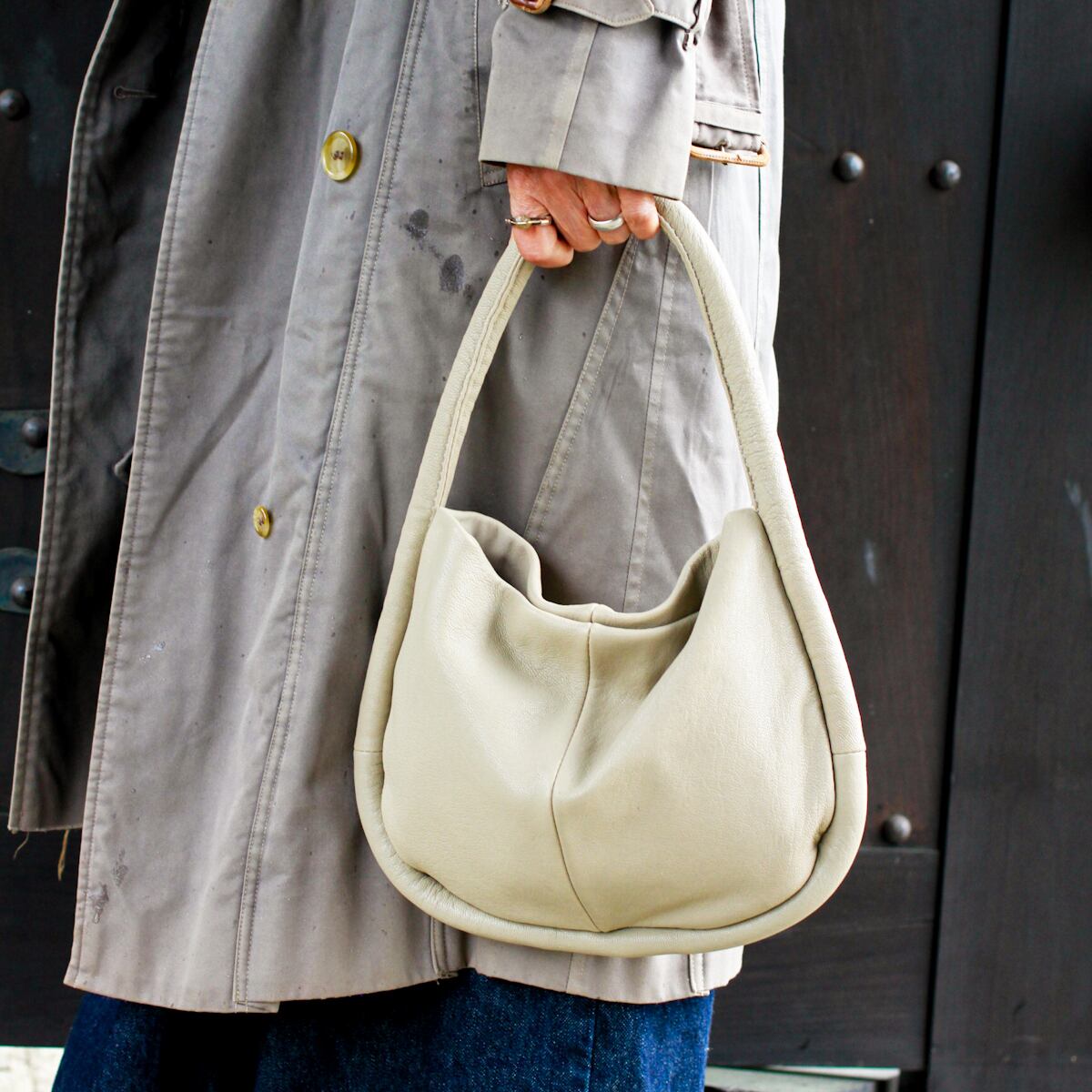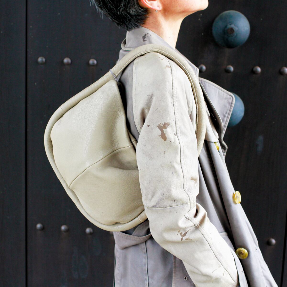 レザー ワンショルダーバッグ|ナチュラルカラー ハンドメイド風 カジュアル上品バッグ ミニマルバッグ