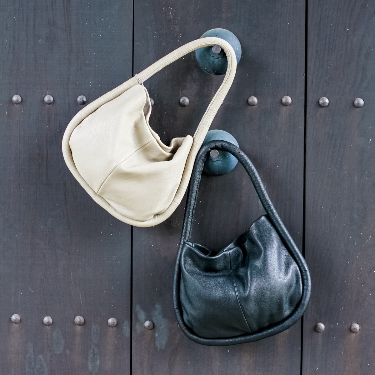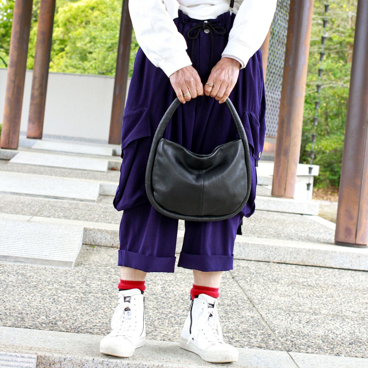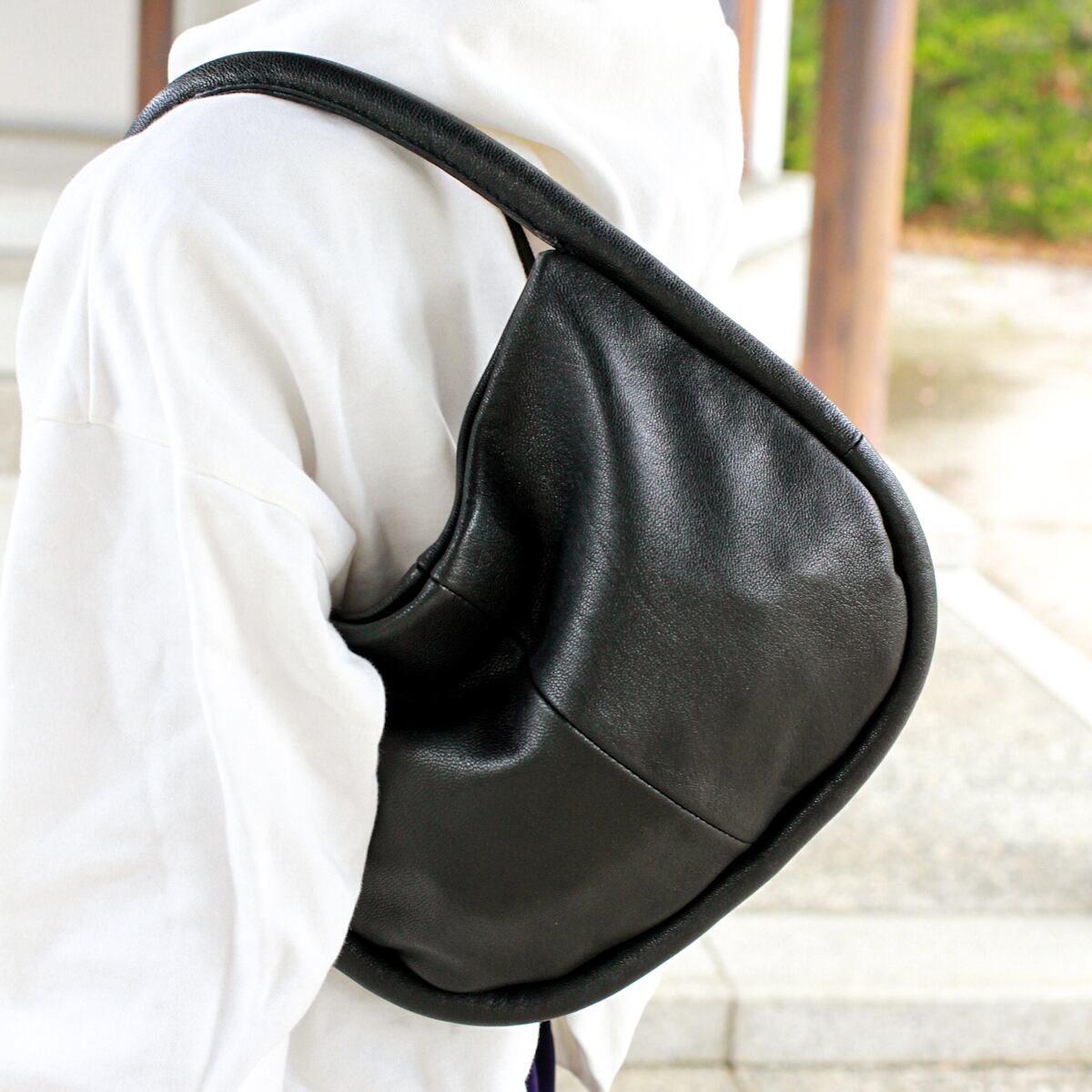 革ワンショルダーバッグ|ナチュラルカラー ハンドメイド カジュアル上品レデイースバッグ ミニマルバッグ黒