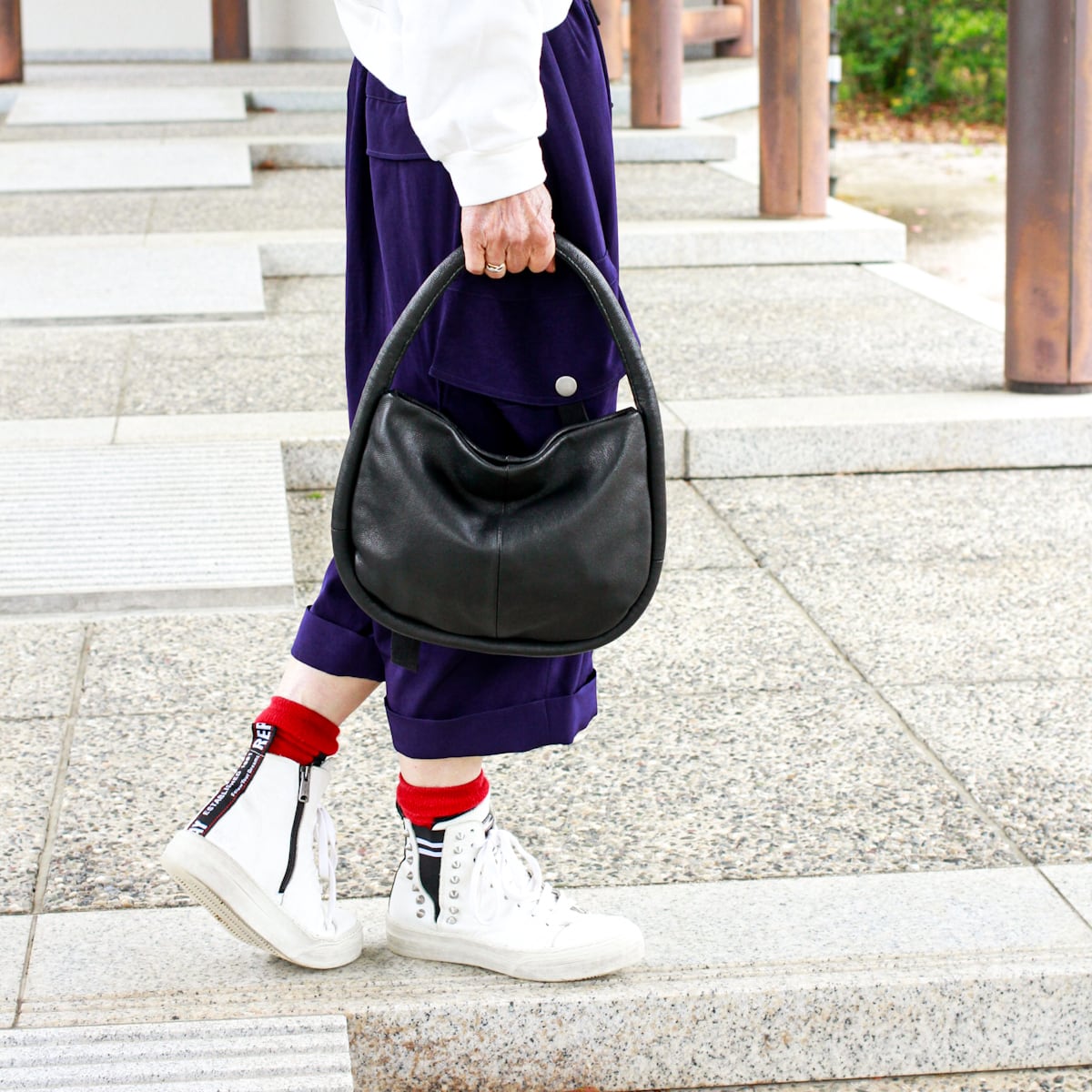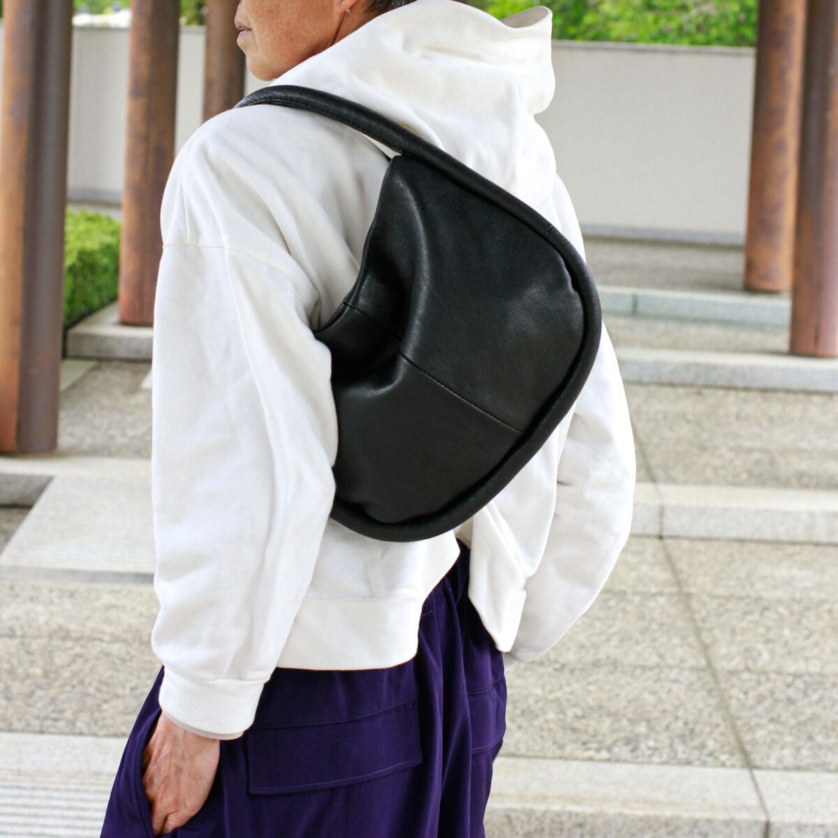 やわらかな本革を贅沢に使用した、丸みのあるハーフムーン型ワンショルダーバッグ。