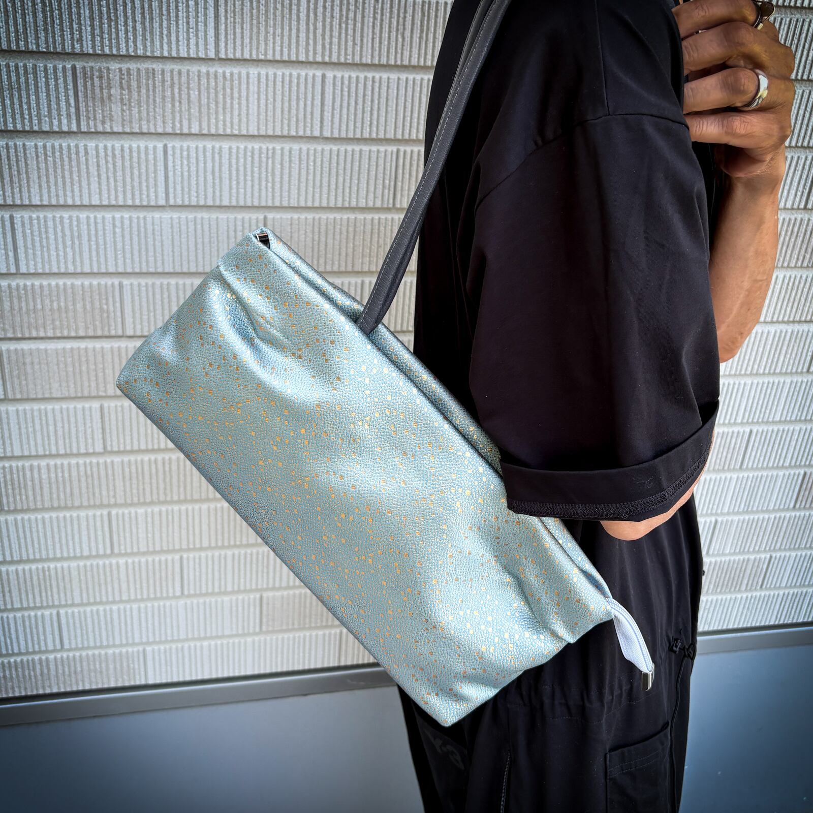 そしてこのバッグの最大の魅力は、洋服だけでなく「着物」にも自然に溶け込むデザインであること。和装の袖に馴染む横長のシルエットと、上品でシンプルなデザインは、きもの姿に違和感なく寄り添い、全体の印象を一層引き立てます。