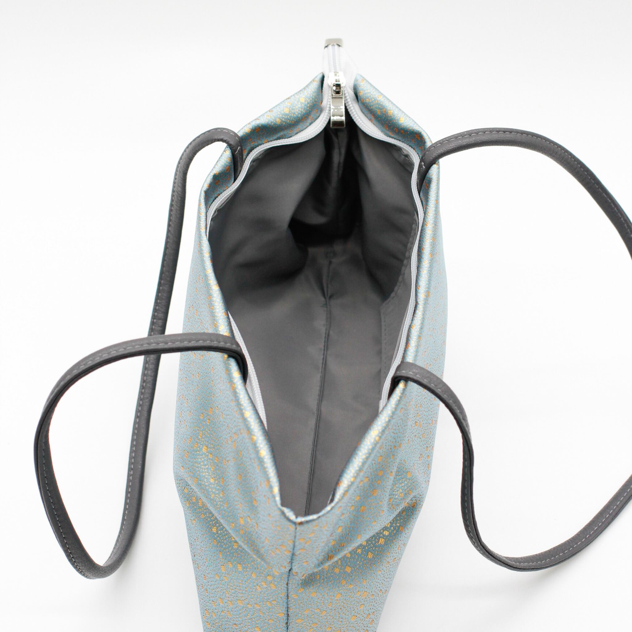 持ち手には、耐久性と軽やかさを兼ね備えたレザー(山羊革・牛革)を採用。長めに設計されているため、肩掛けでもストレスなくお使いいただけます。