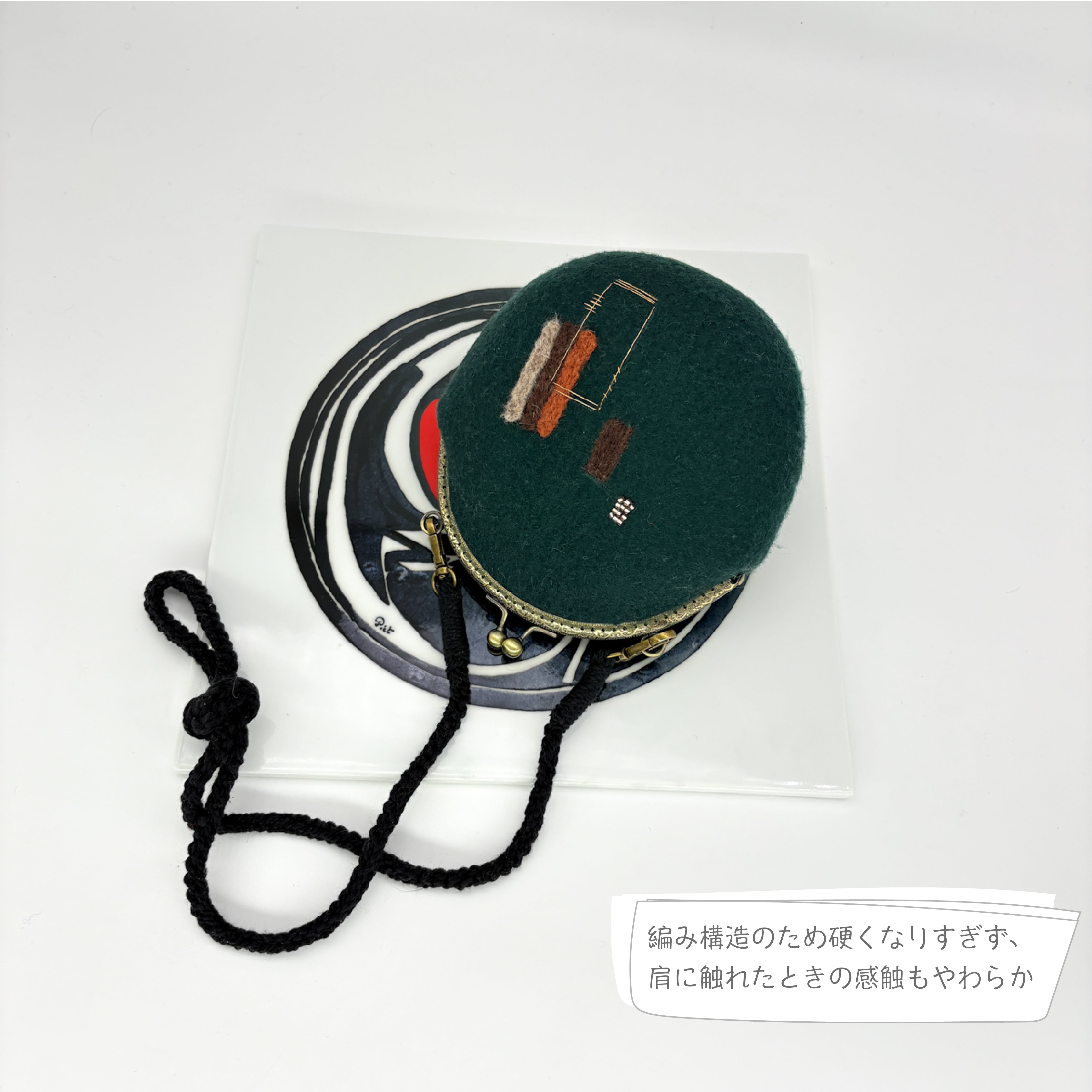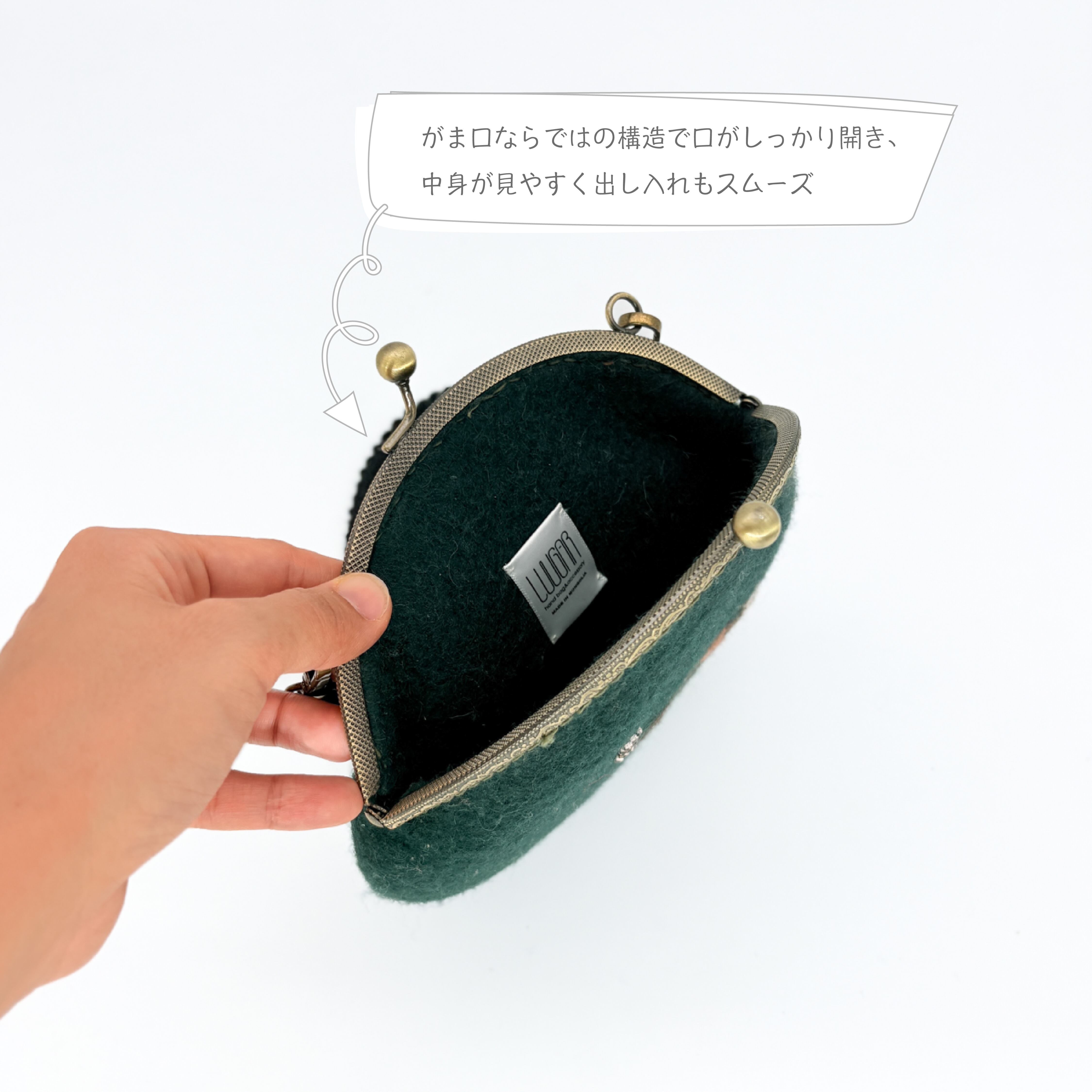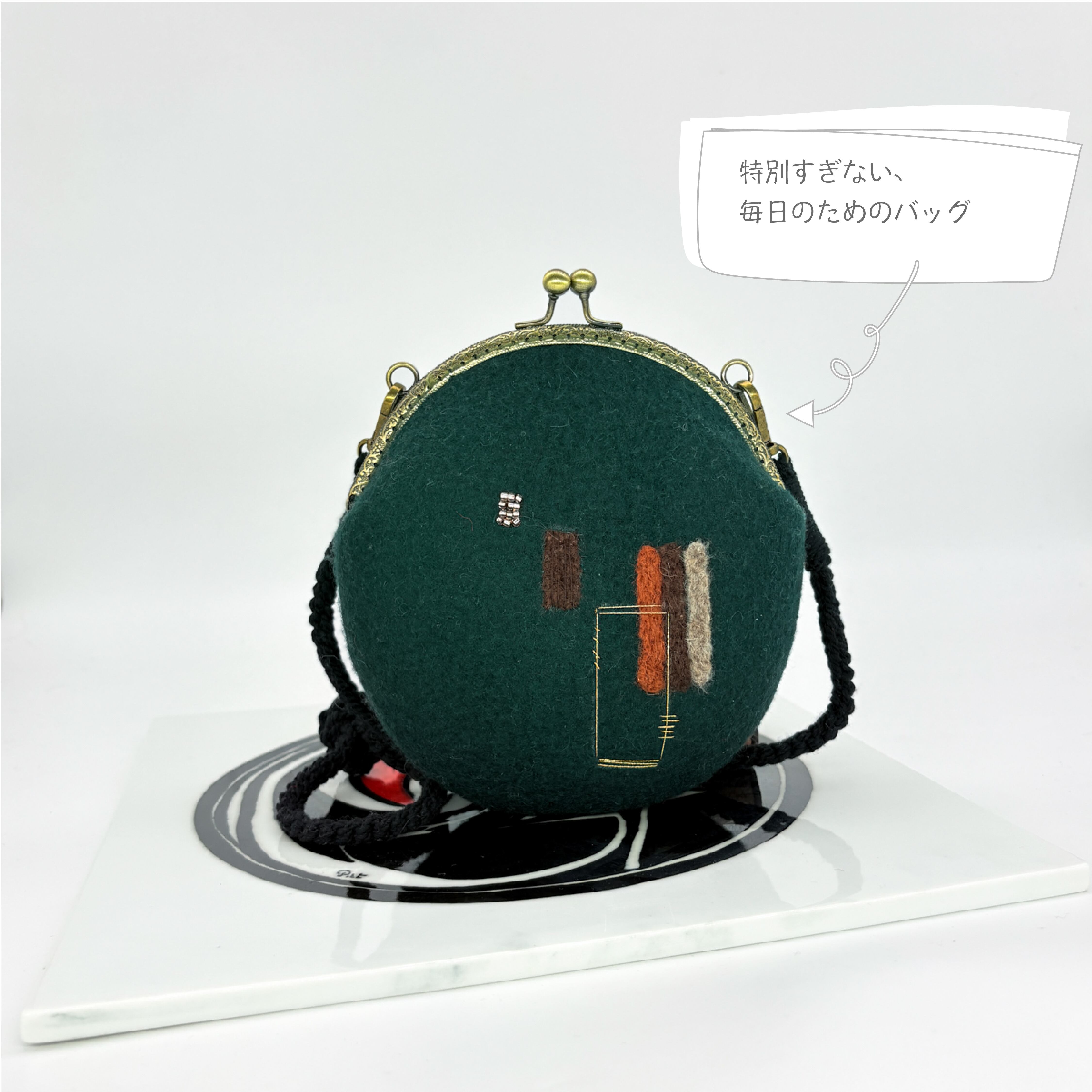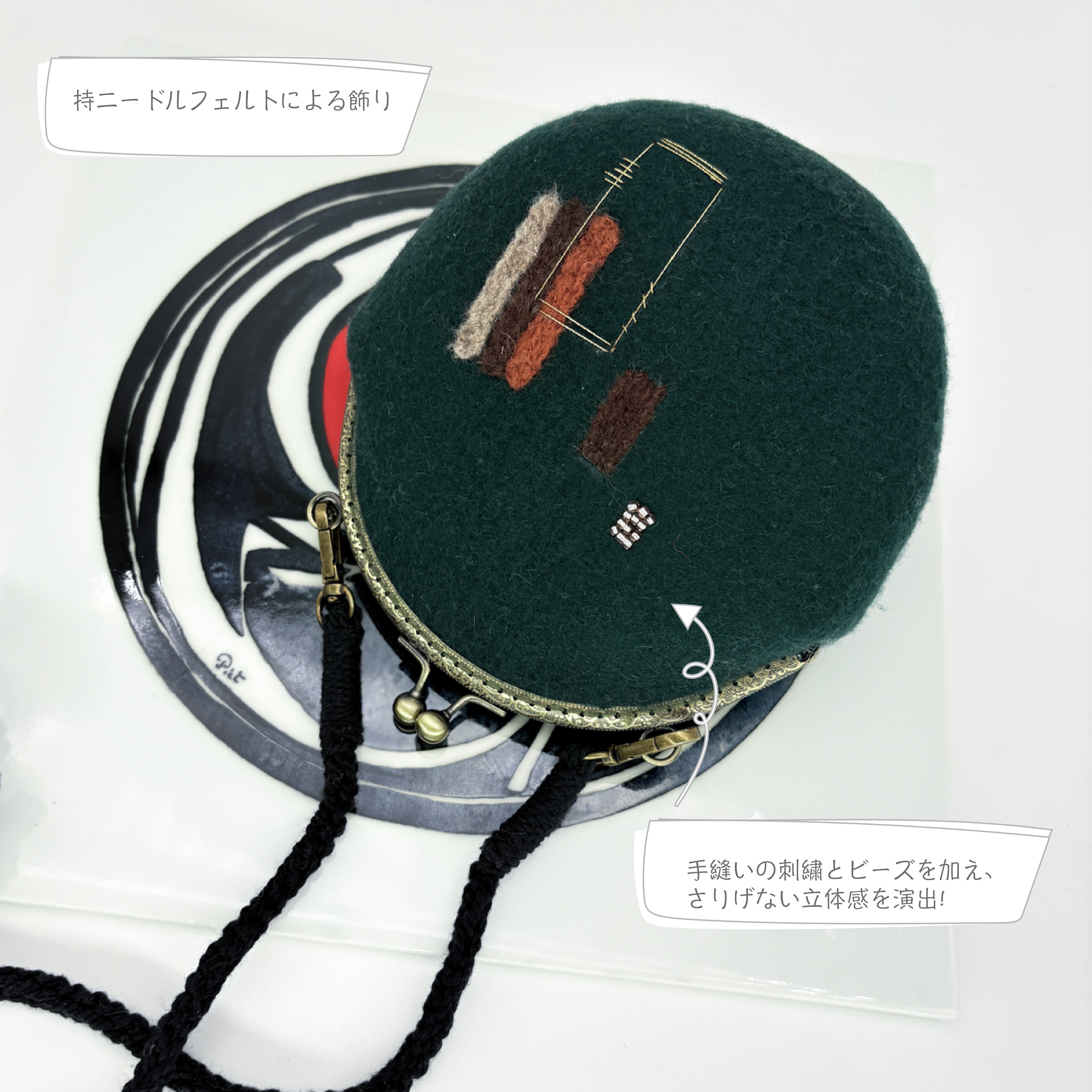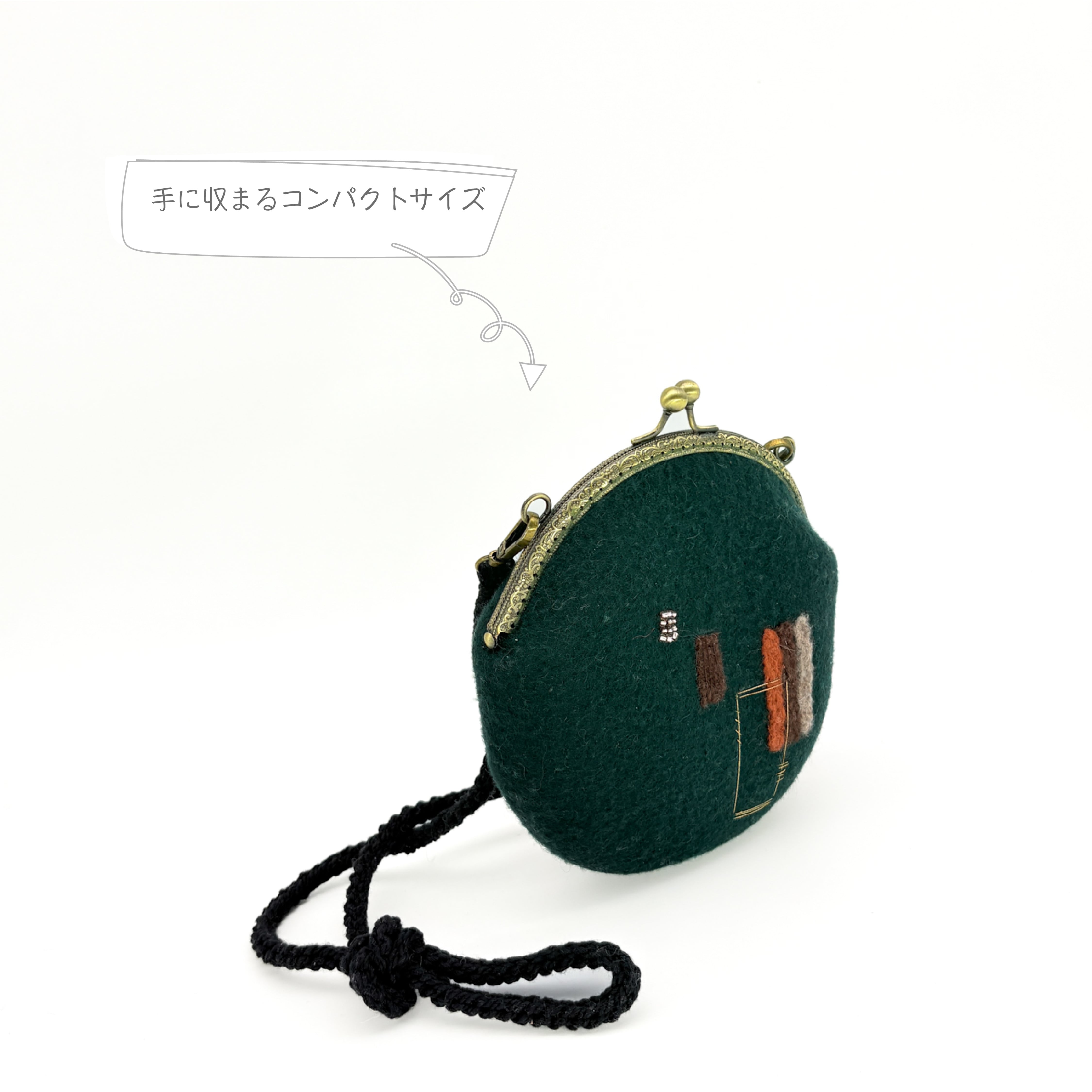 フェルトのがま口ミニバッグ|ニードルフェルト×手刺繍デザイン