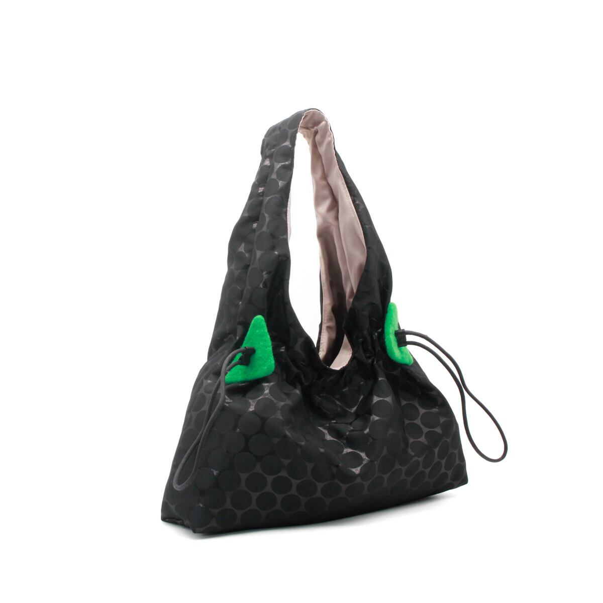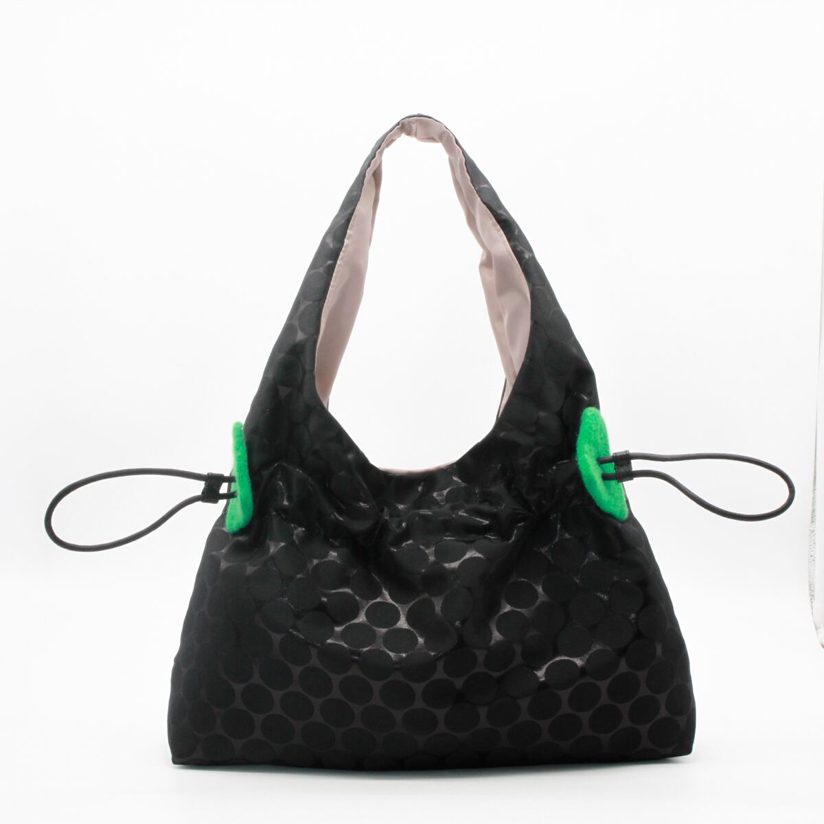 ホーボーバッグ / 軽量・ドット柄バッグ / シャーリング・ ギャザーバッグ / レディースバッグ-(緑)
