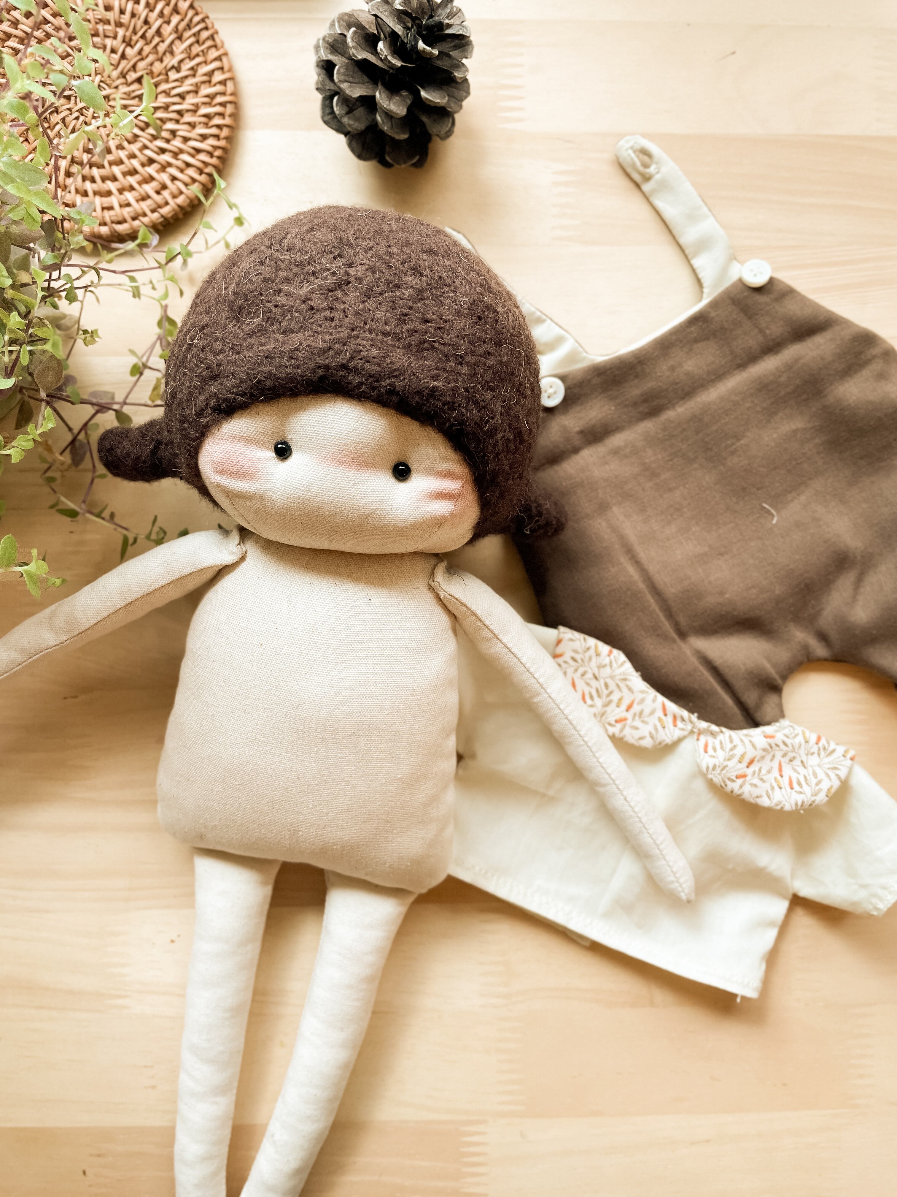 着せ替え人形 女の子クリスマスプレゼント カウントリードール ぬいぐるみ brownhair サロペット可愛い