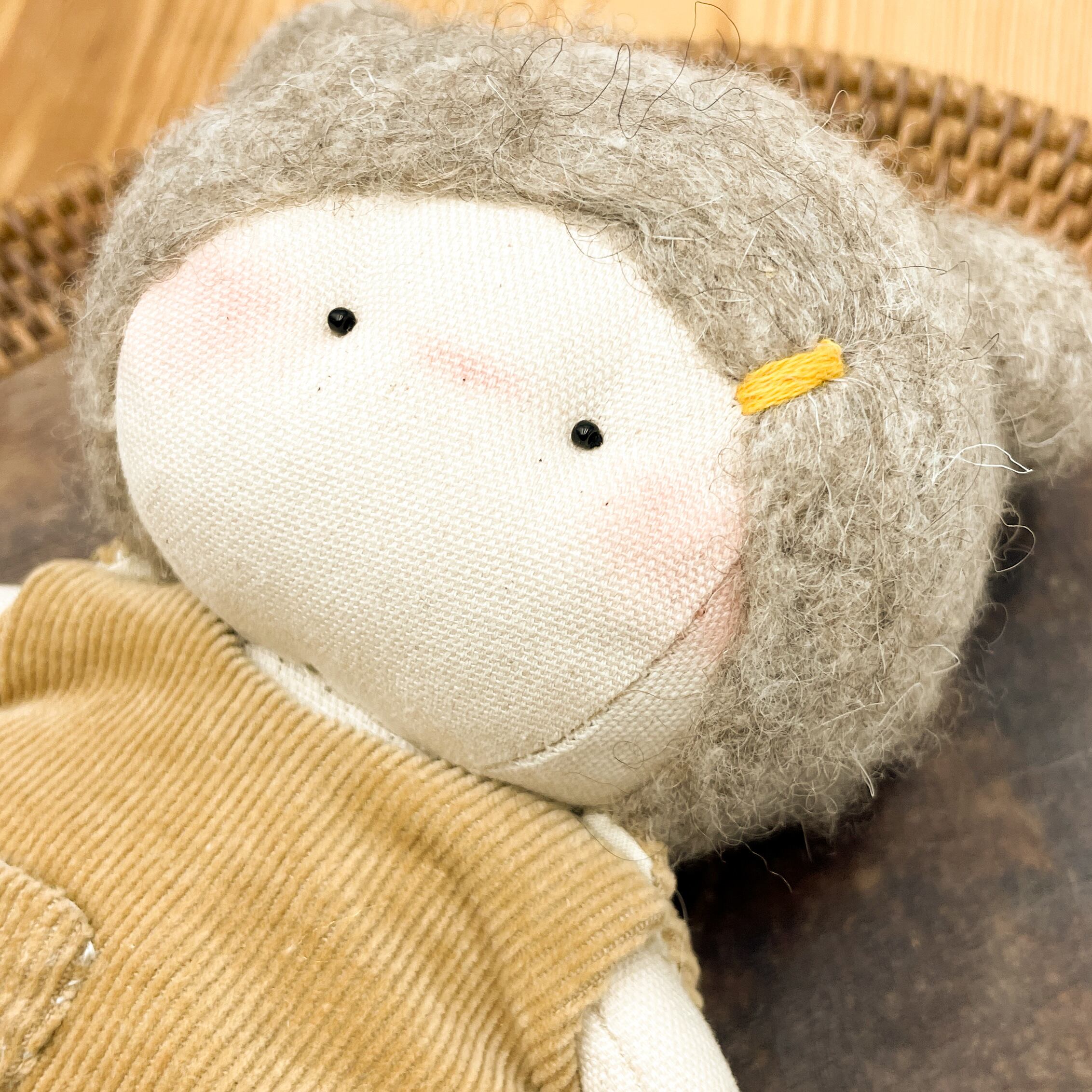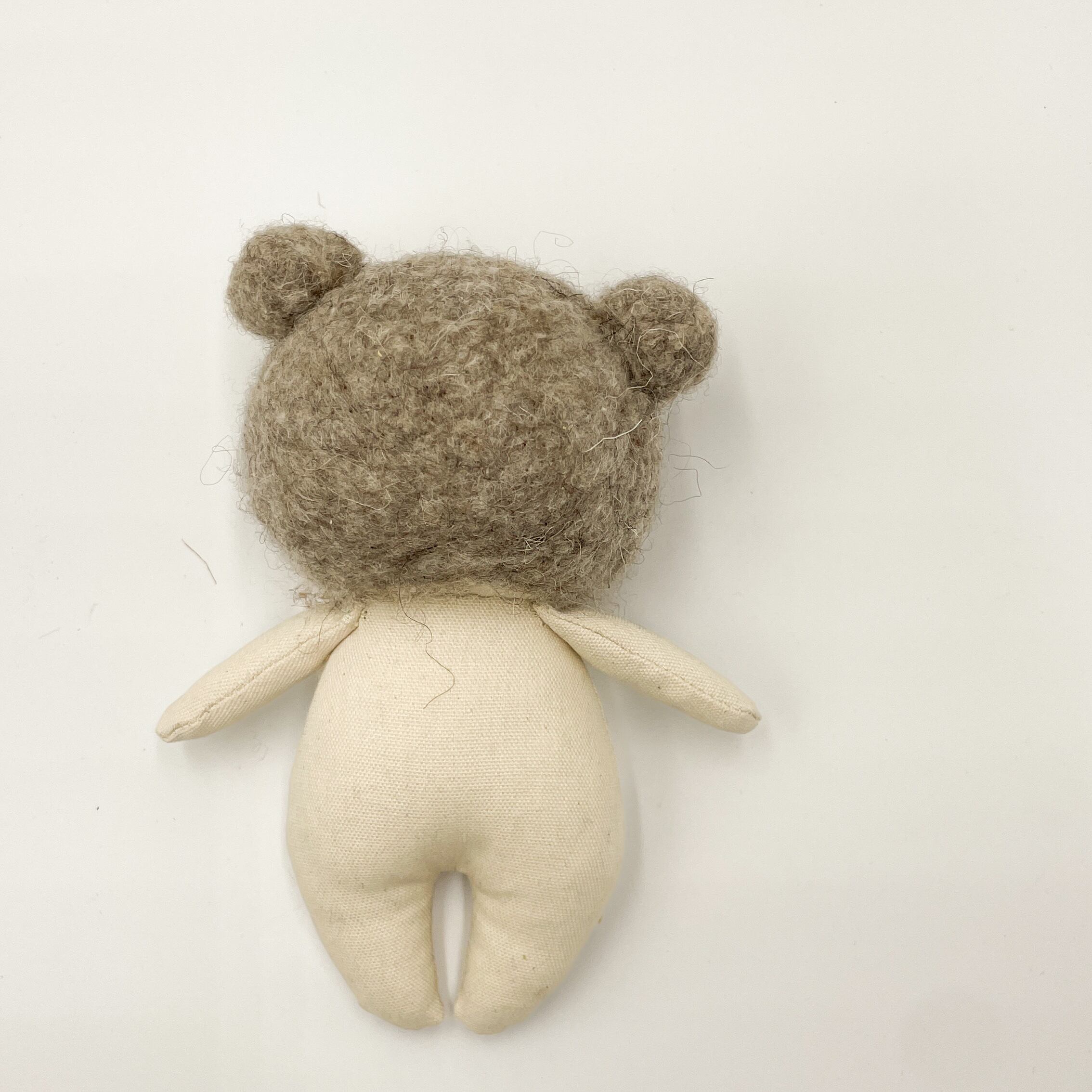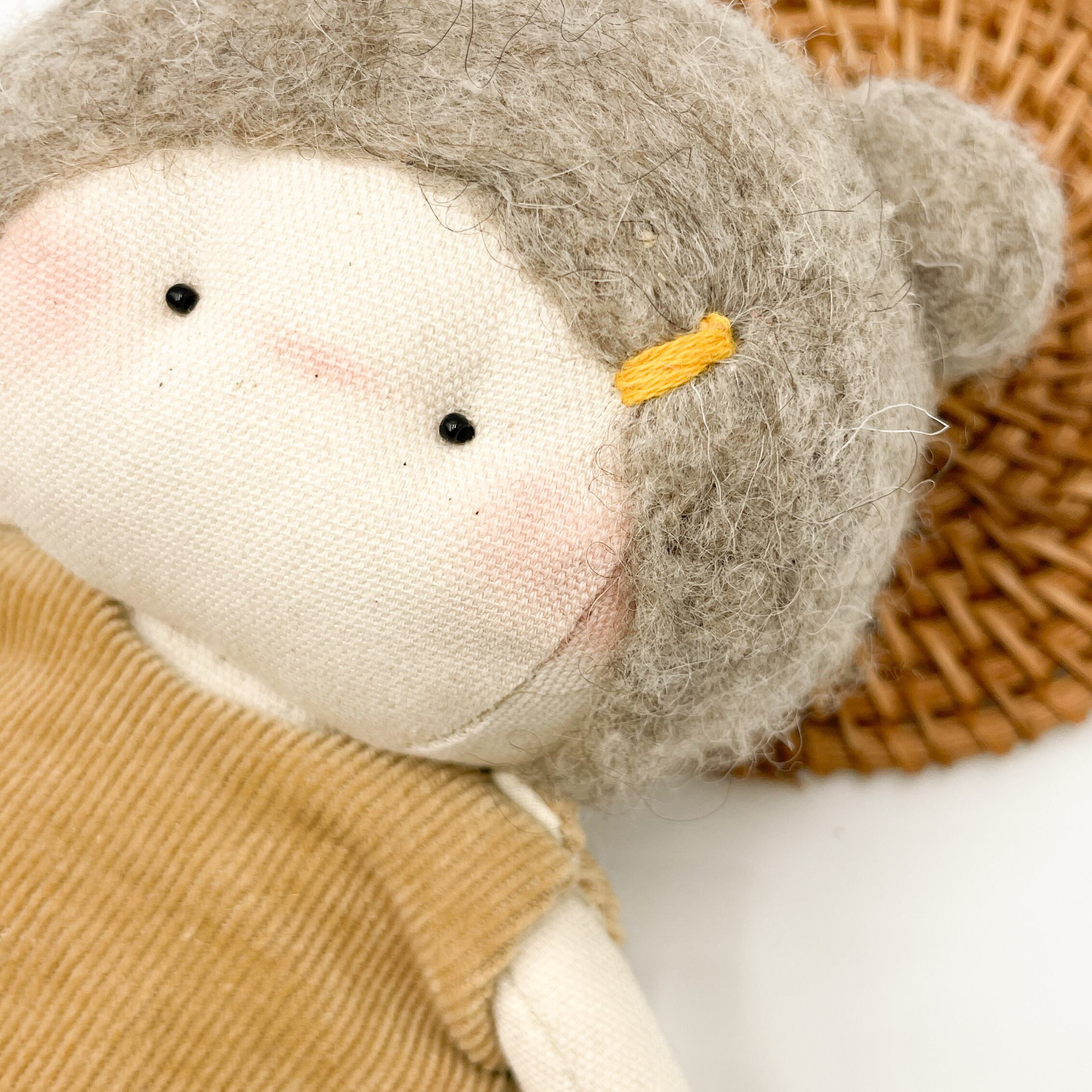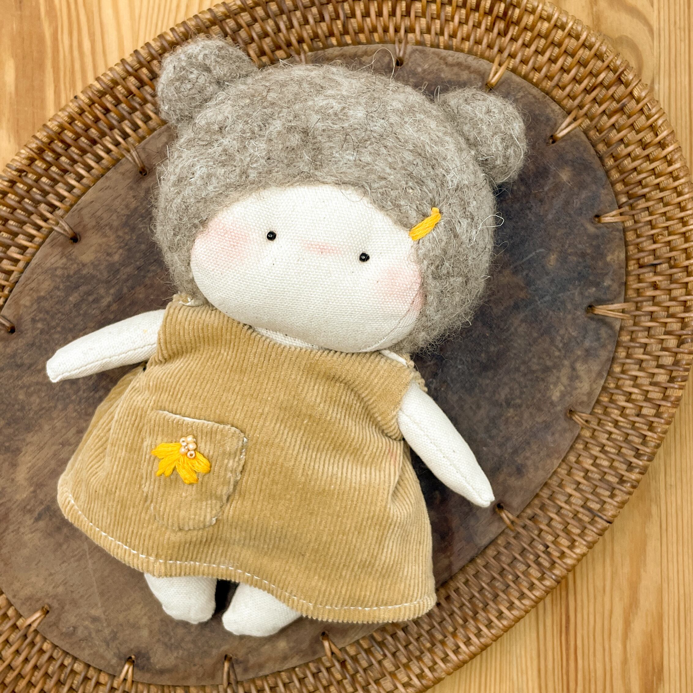 手のひらサイズでキュートなぬいぐるみが登場しました!100%ハンドメイドのミニぬいぐるみで、愛らしいくまさん耳が特徴です。ふわふわのフェルトヘアと、手縫いのデザイン刺繍がドレスに施されていて、とってもキュートなんですよ。