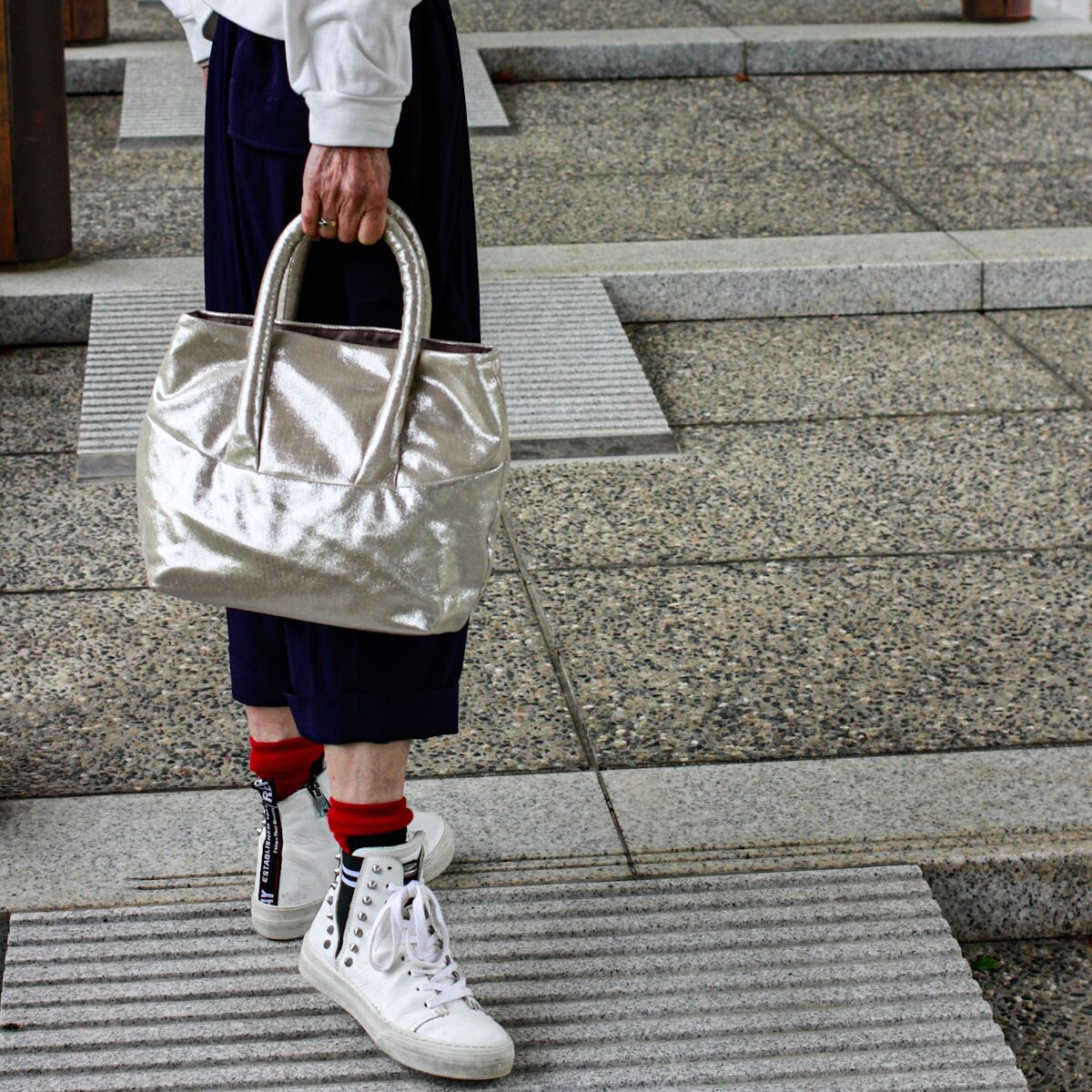 軽いボストン風手提げバッグ iPad 11インチが入るサイズ Msize 黒/シルバーゴールド