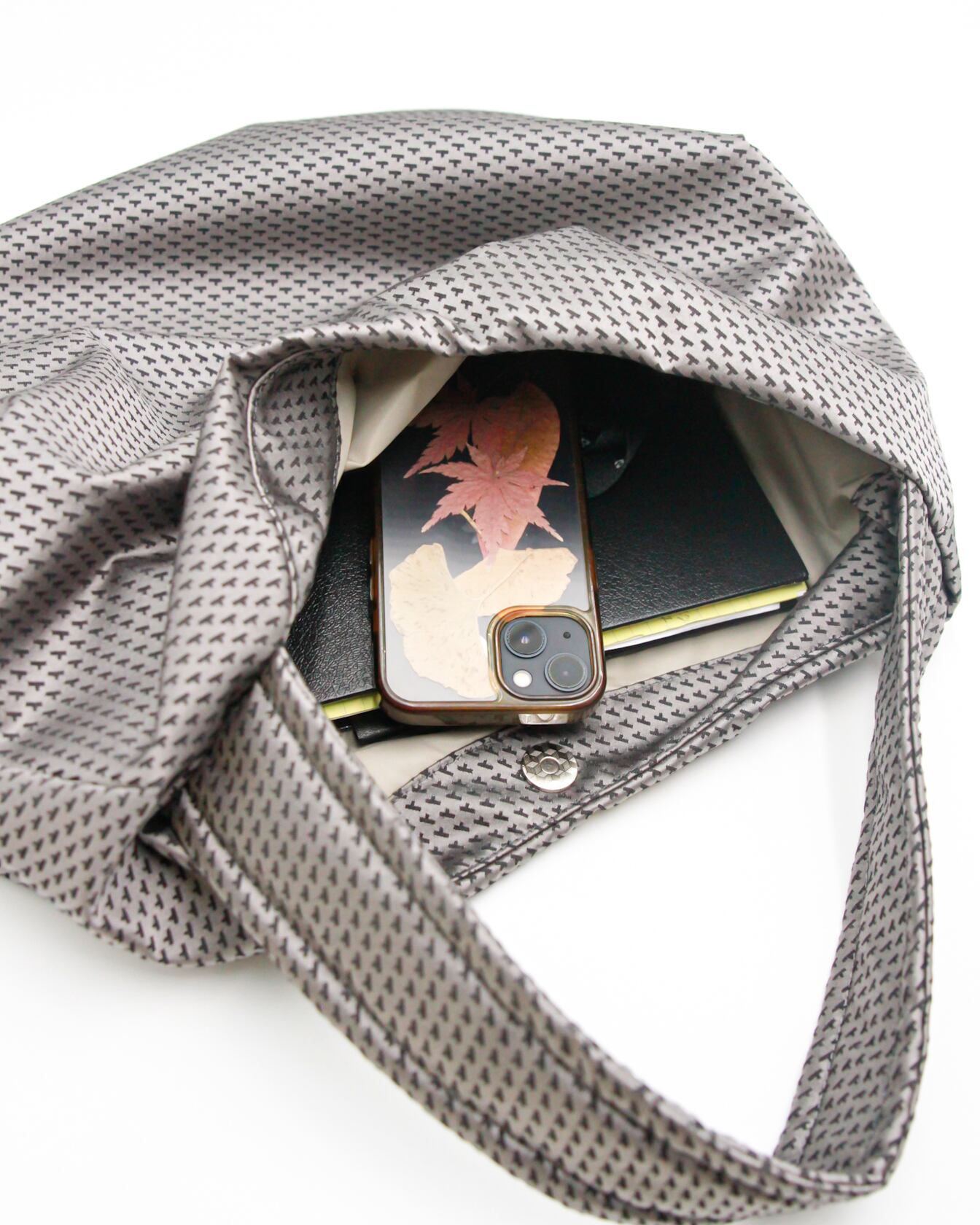 特徴的な柄付き素材は、スタイルに華やかさを加えています。このトートバッグは、A4サイズのファイルも楽に収納できるので、仕事や学校の必需品をスムーズに持ち運べます。また、軽い作りなので、肩にかけても負担を感じさせない快適な使用感が得られます。