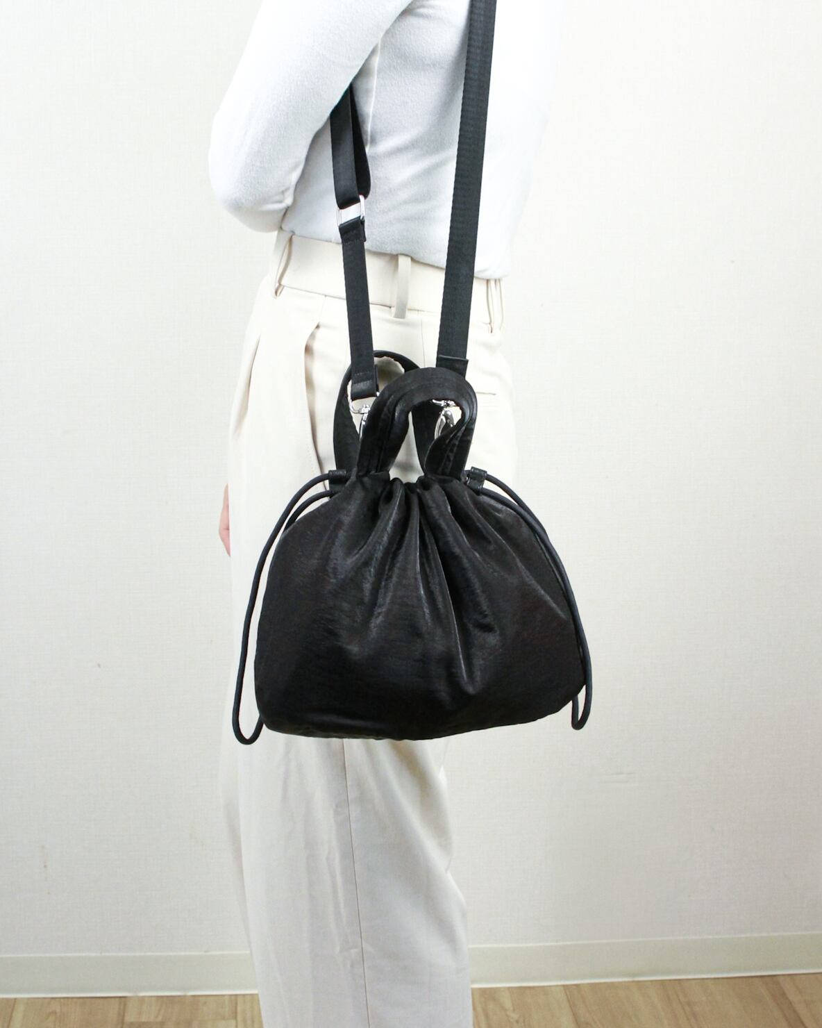 巾着 2ウエイショルダーバッグ レディースバッグ グリッター素材 黒色 Sサイズ