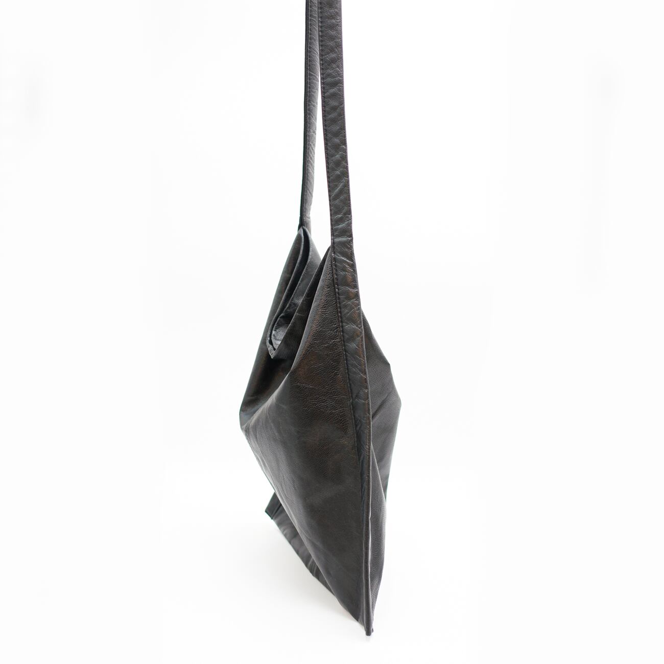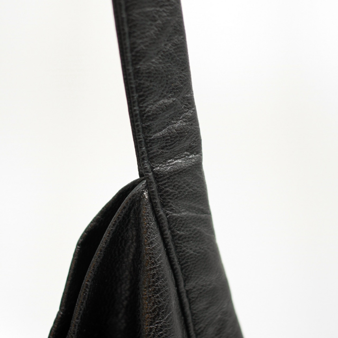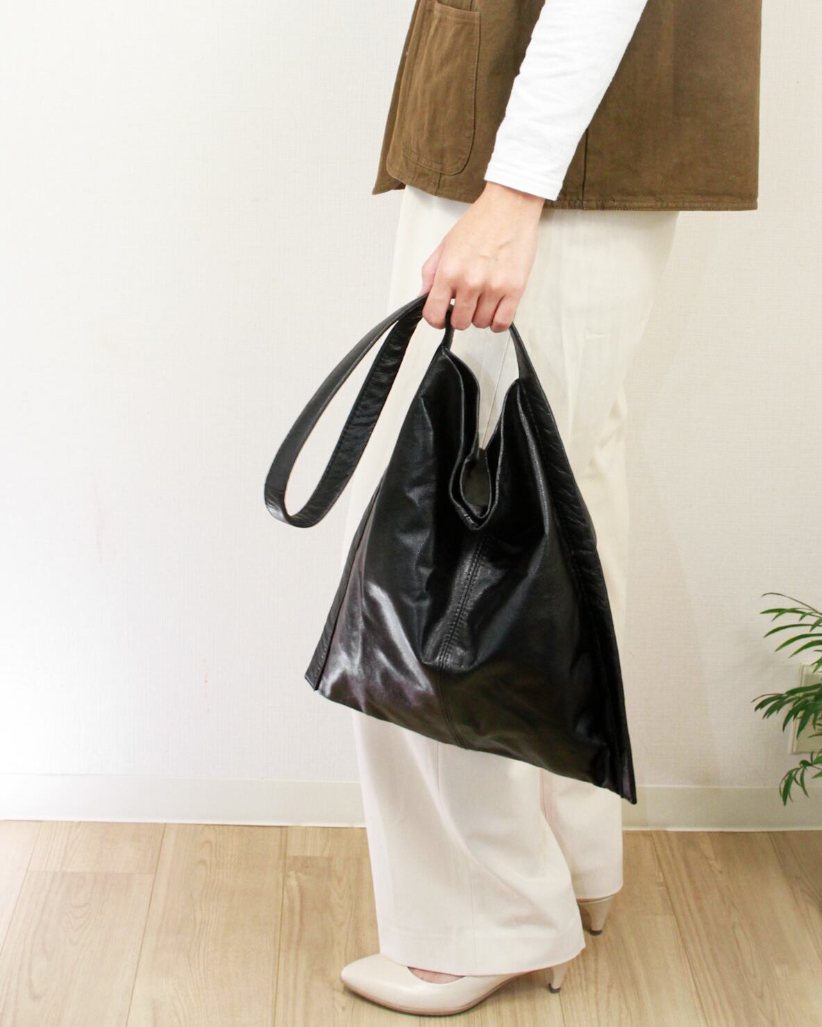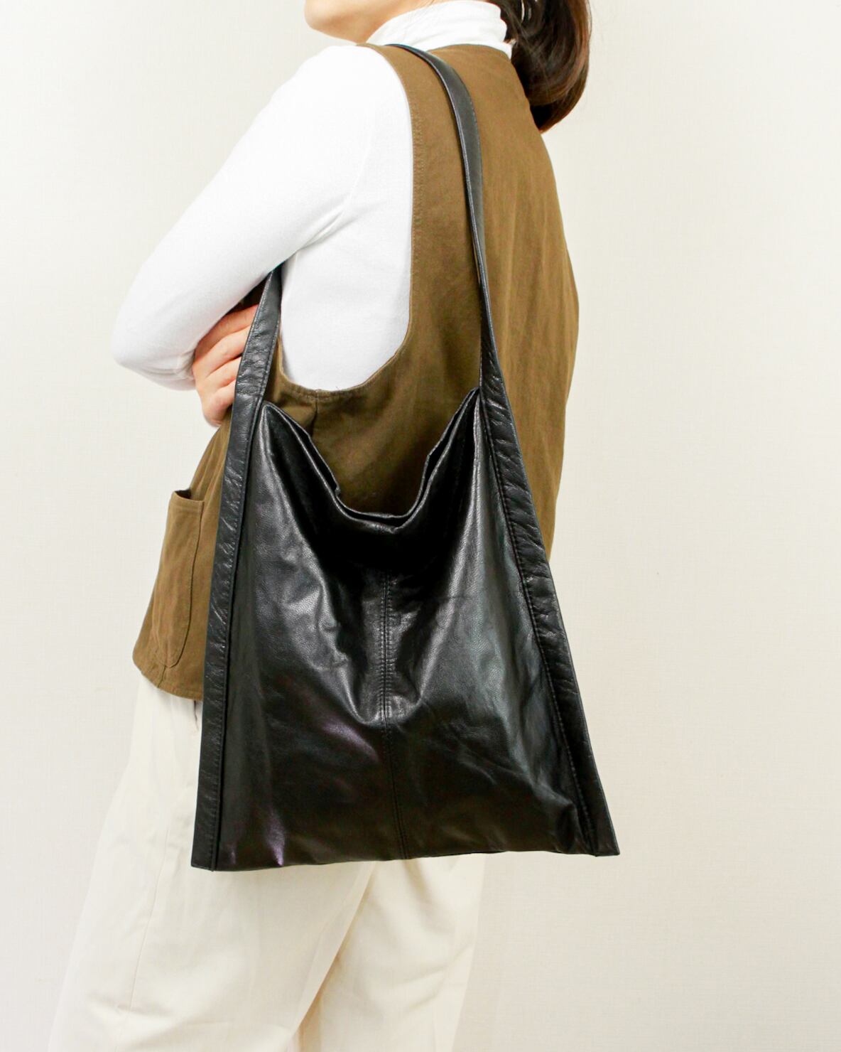 ワンショルダーバッグ 薄マチ ゴート革 軽いレディースバッグ 黒レザー