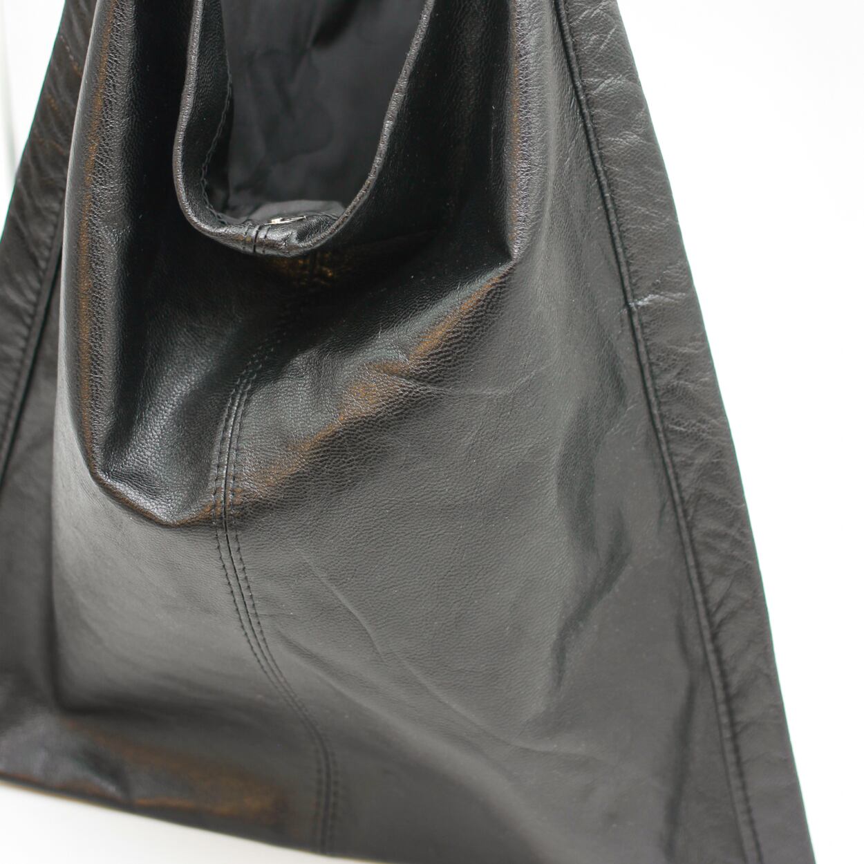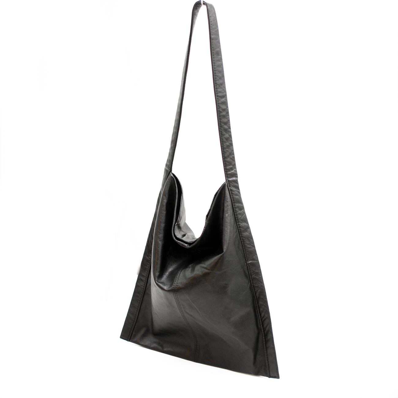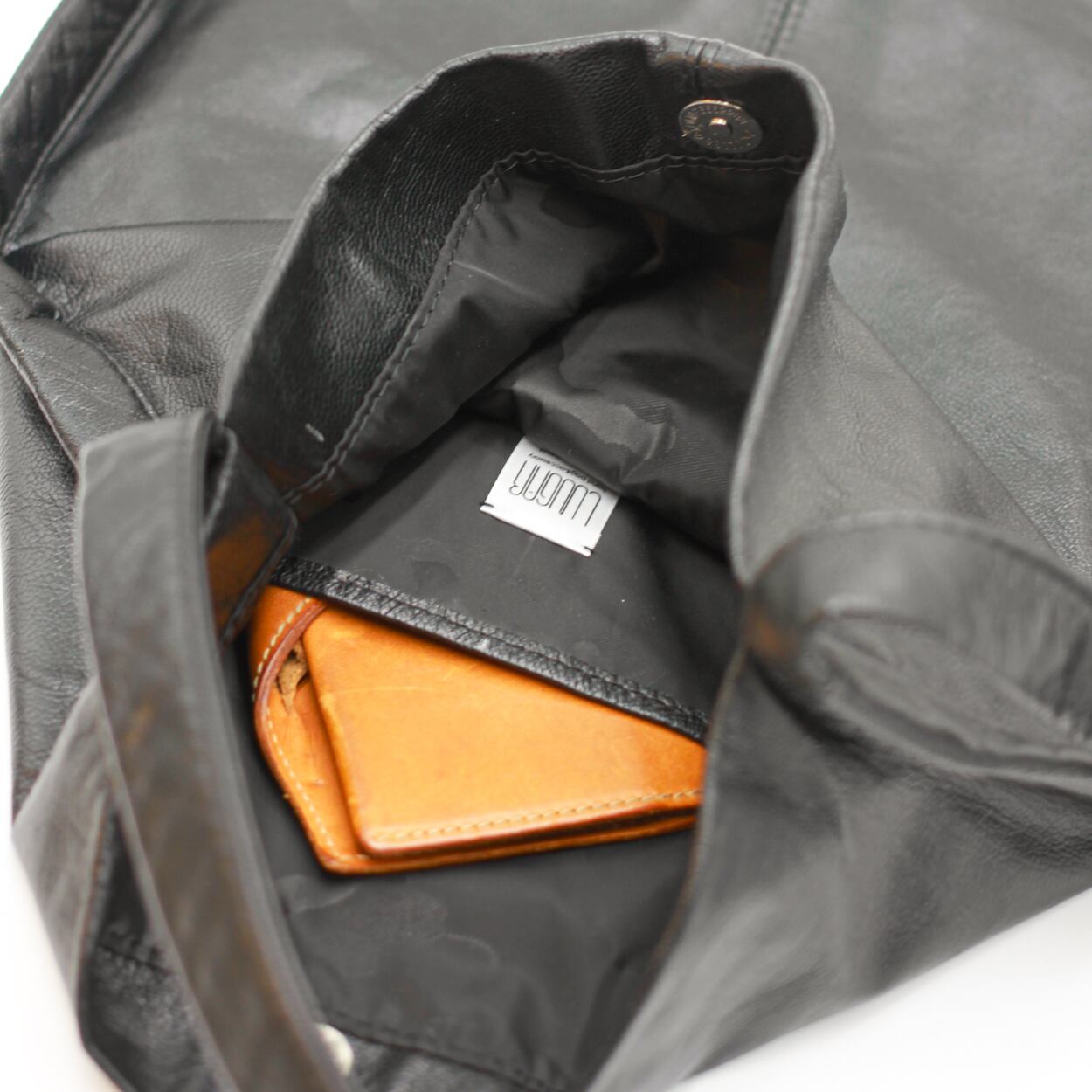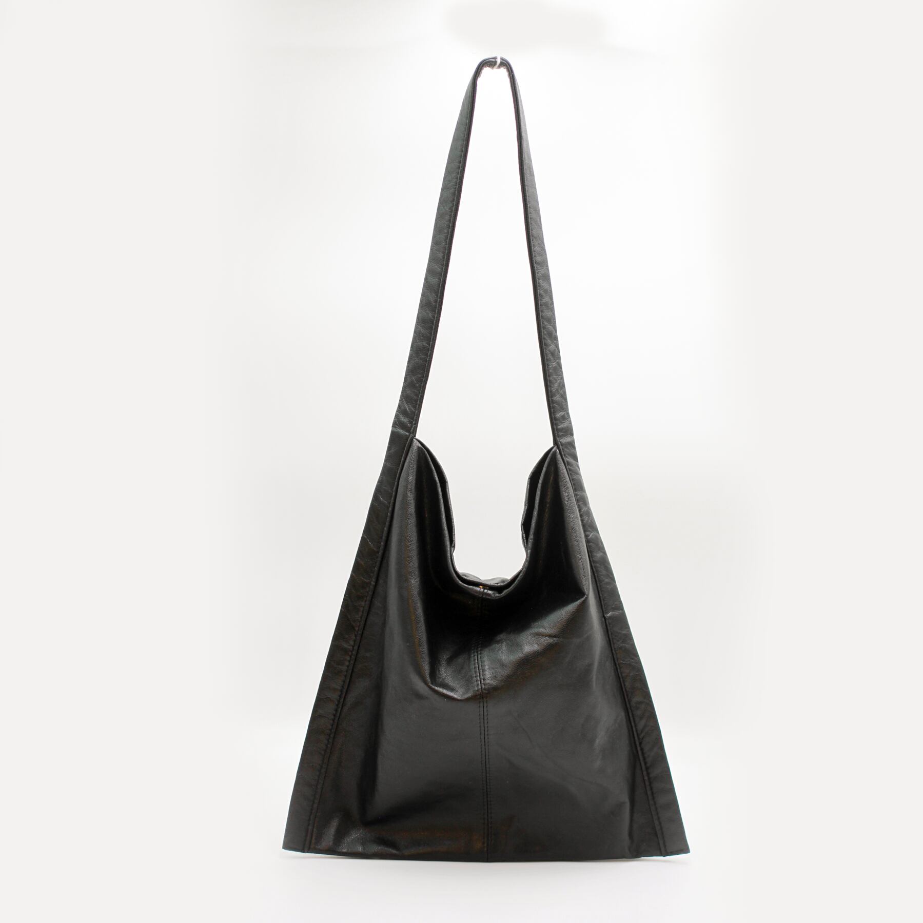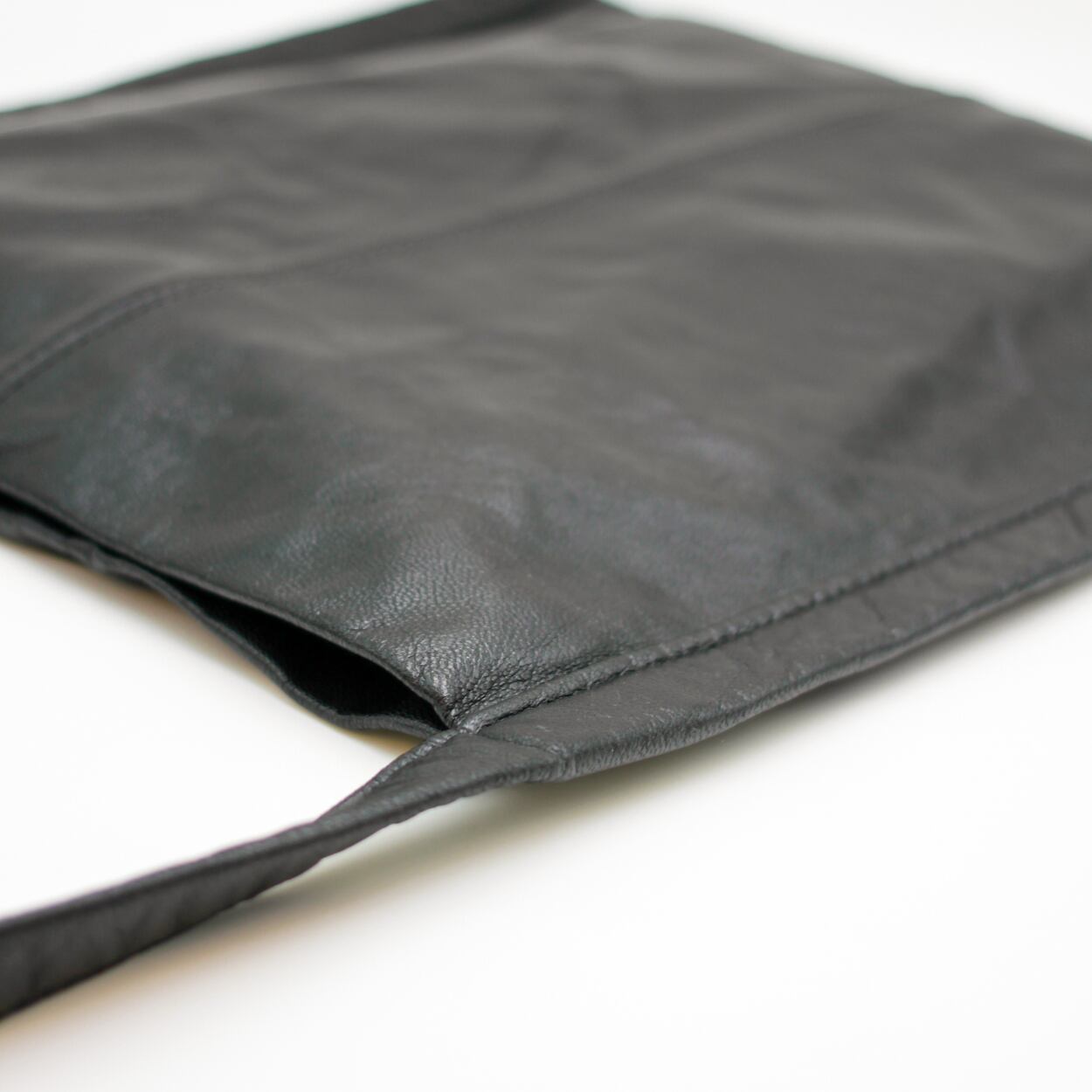 ワンショルダーバッグ 薄マチ ゴート革 軽いレディースバッグ 黒レザー